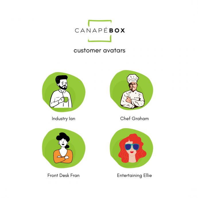 Most recently we had our new client consider his “Customer Avatars” – creating somewhat pretend personas of his most typical customers. We identified 4 and gave them memorable names. We then proceeded to think about their problems, motivations, and what they need from Canape Box.