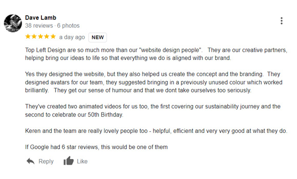 Below is a screenshot of our Google Review, Dave’s own words! We love this review, and of course the quotable line from Dave “If Google had 6-star reviews, this would be one of them”.