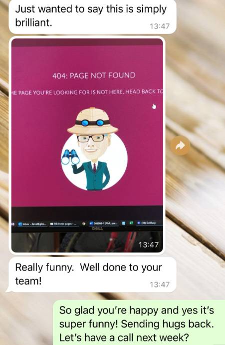 We like to add unexpected little details. For example, Amy created a special 404 page – the page you would only ever see if you went to any wrong URL on the Gibson Lamb website.