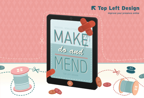 We have been working hard on our newsletter, as we always do. And it’s ready to send! In this one the illustration was done by Tina and Amy worked on the graphics for the rest of the newsletter. Other newsletters often feature illustration work by Tamlyn – who drew our owls! Those of you who dont subscribe, you’re missing out! We almost always do special offers, games and prizes. Our latest creation involves a theme – “Make Do and Mend” which goes with the whole “January Austerity” feeling. No point in being frivolous and overly extravagent – it’s just not the done thing! So, in our newsletter we have listed “8 free or almost free ways to improve your presence online.” We do like the number 8!