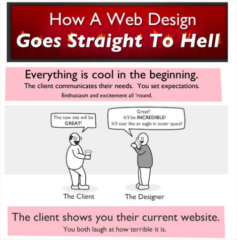 This was beautifully illustrated in this article by Matthew Inman in his famous comic “How a Web Design Goes Straight to Hell” written on The Oatmeal. Have a look – it really says it all!
